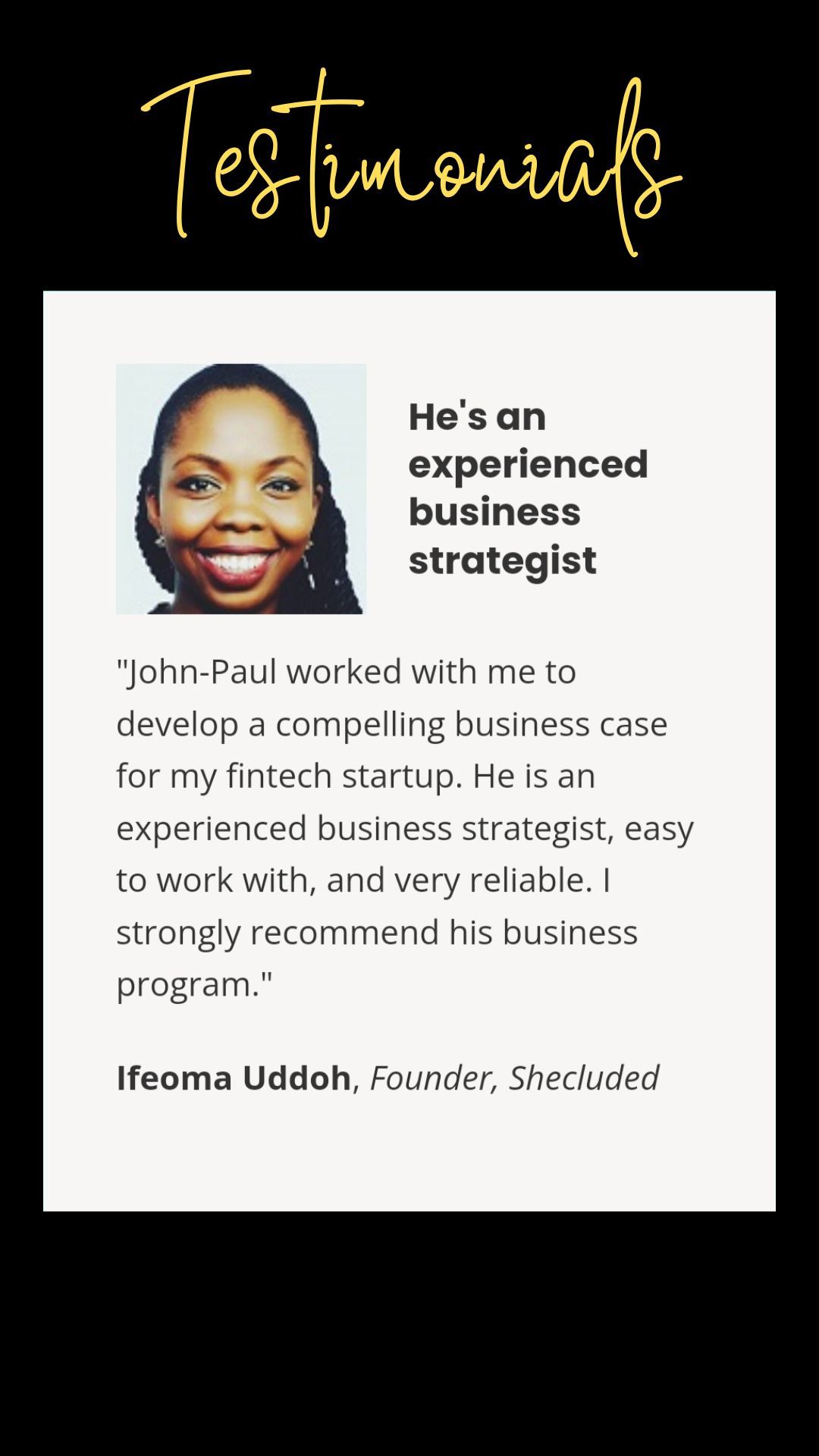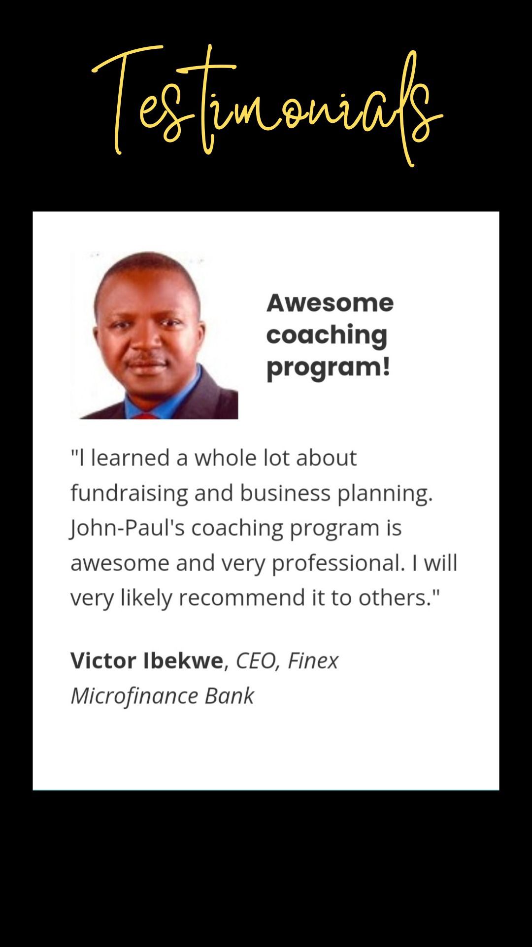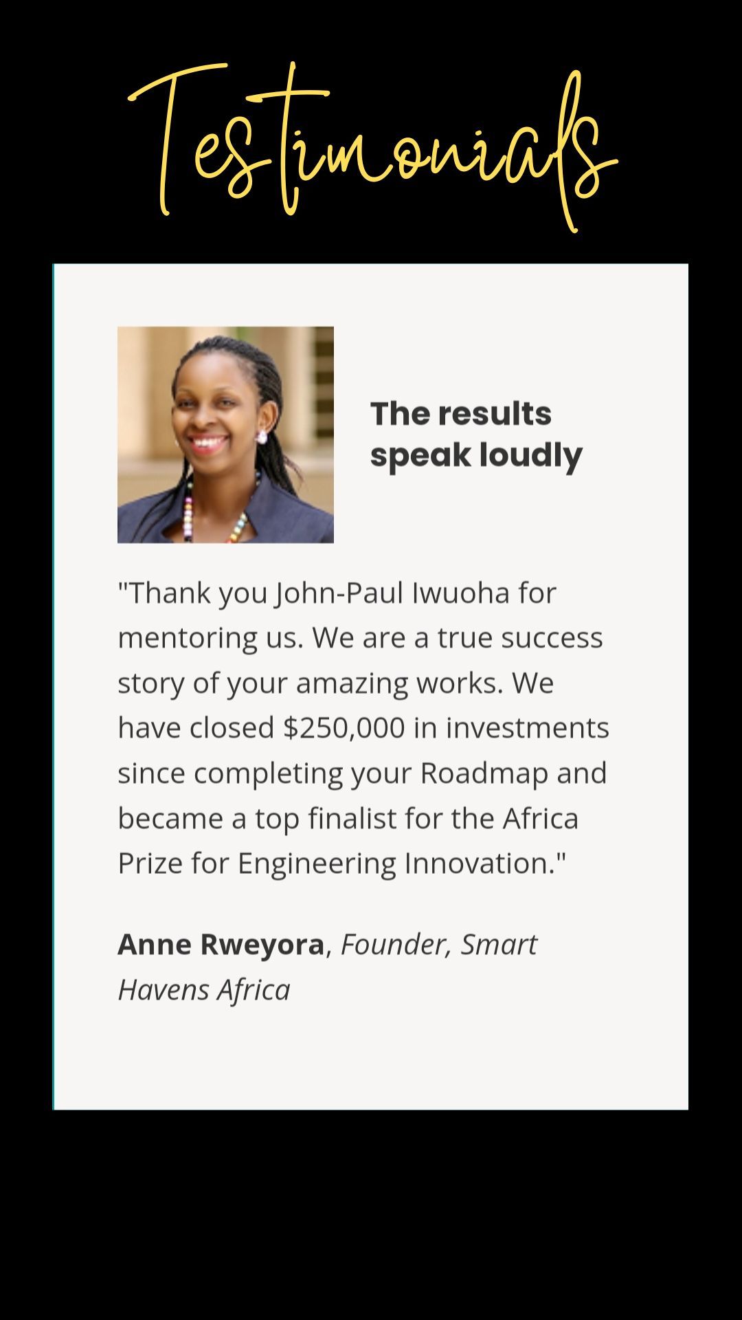 John-Paul Iwuoha has worked with dozens of entrepreneurs to achieve important business milestones.