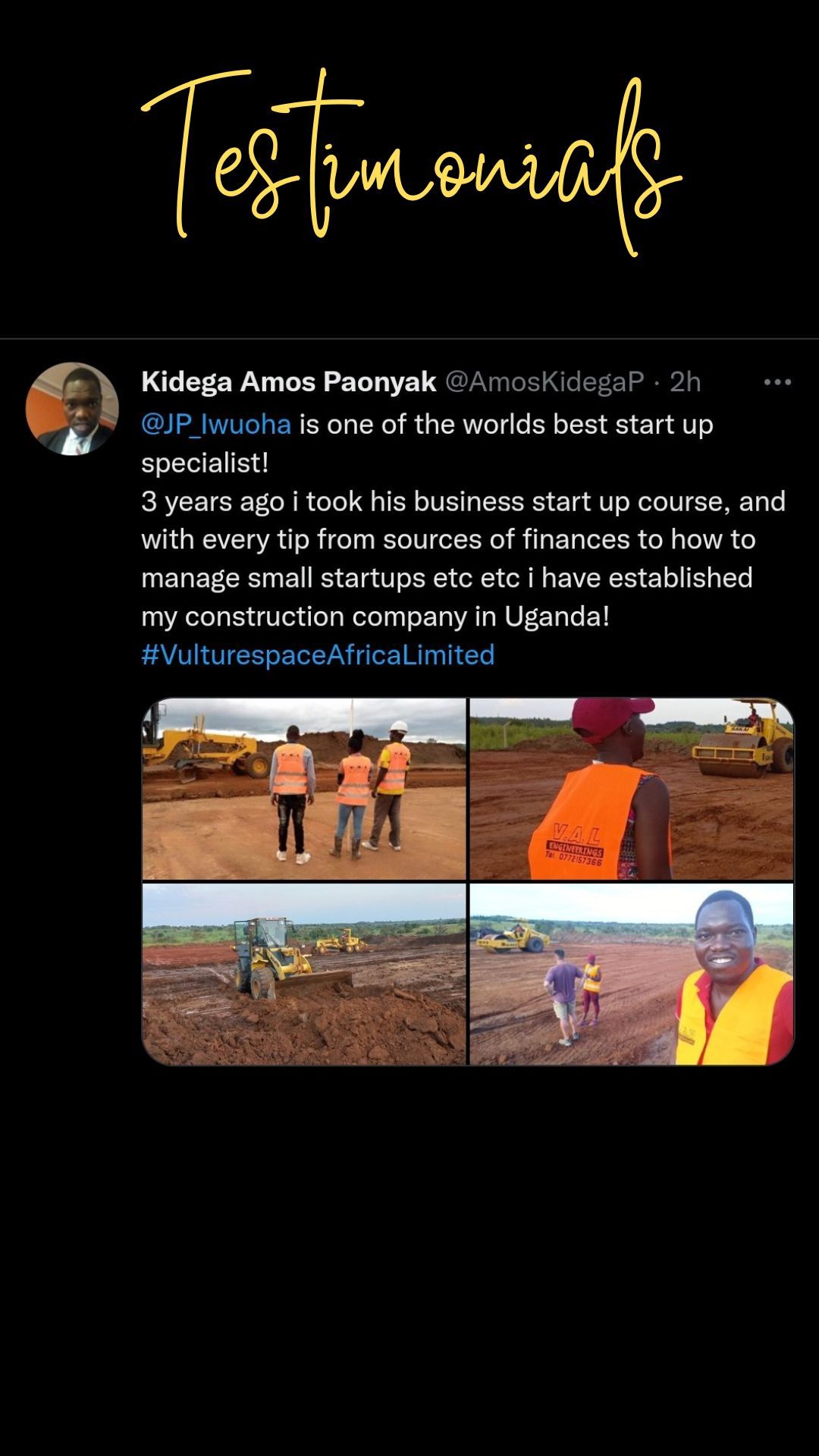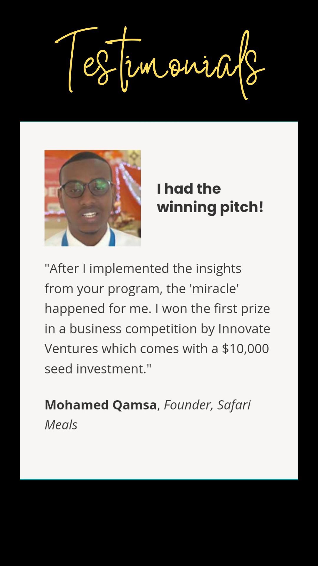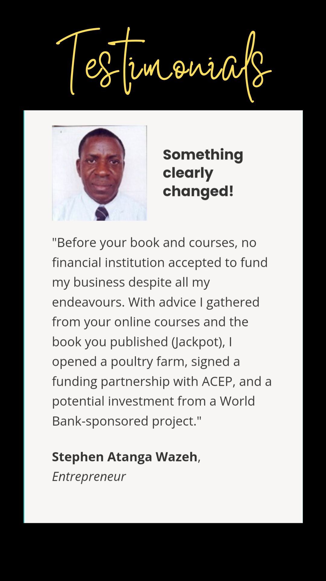 I have received hundreds of testimonials from entrepreneurs who have benefited from my knowledge and insights.